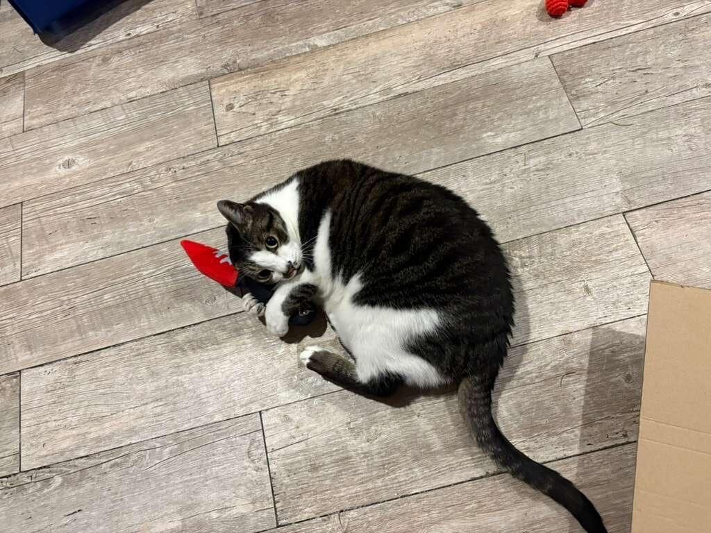 Zelda loves her bloody knife! She enjoys the catnip and plays with her toy all the time.
